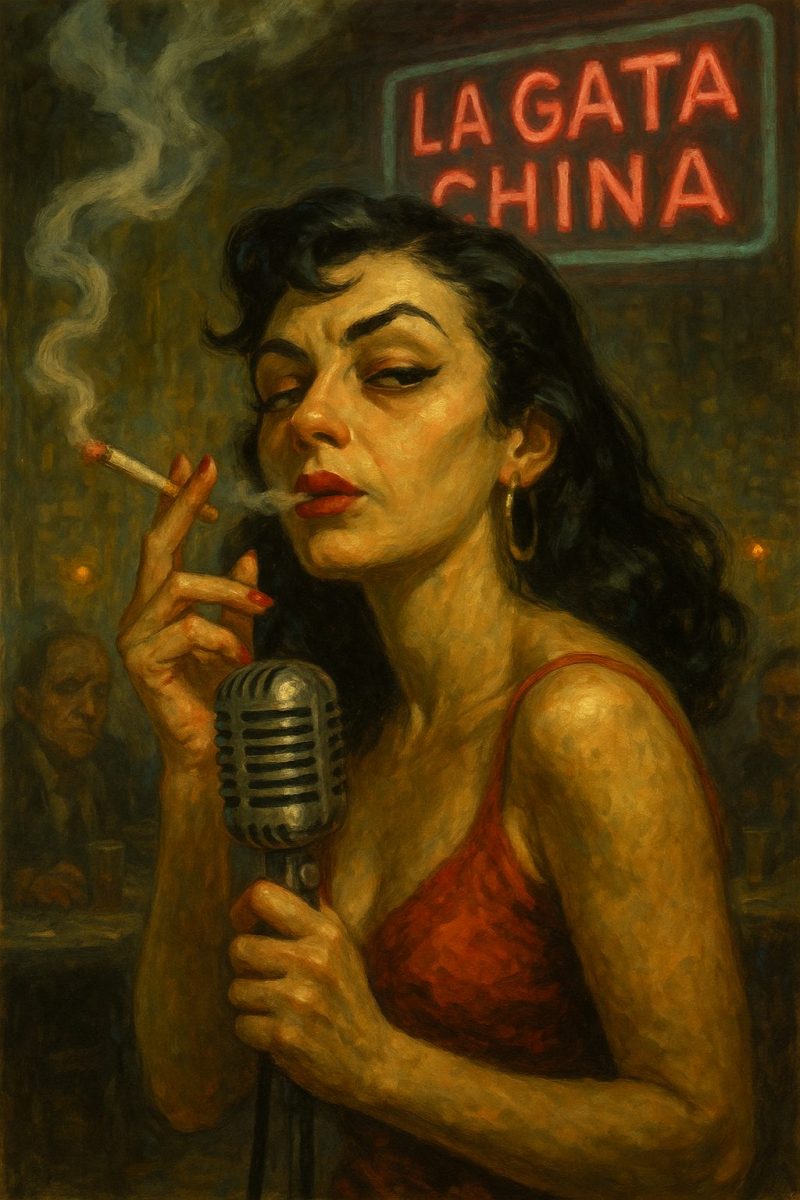 A la mina la conocían por el humo del faso, no por el nombre. Tabaco berreta, del que te raspa la garganta y te hace lagrimear. Bajaba al sótano después del laburo, se emperifollaba con lo que quedaba del carmín —puro rebusque— y le daba al micrófono. En la cartelera de neón medio quemado decía “La Gata China”, en letras torcidas y fondo desteñido. Pero en el boliche, entre mesas pegajosas y vasos rotos, le decían Reina y ella se descostillaba de la risa. ¿Reina de qué? Si a las seis andaba barriendo mugre en oficinas y a las once, cantando para borrachos que no sabían si aplaudir o pedir otra vuelta de ginebra.